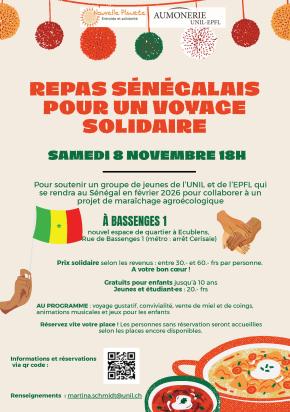 Un groupe de jeunes de l'Aumônerie de l'UNIL/EPFL organise un souper de soutien afin de récolter des fonds pour un projet de maraichage durable dans un village sénégalais. Réservez vite votre place ici !